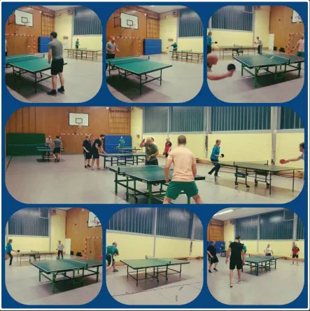 Eine Gruppe von 12 Personen trifft sich zum Tischtennis spielen.